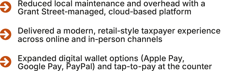 After implementing Grant Street Group’s TaxSys®, the office modernized tax administration and how residents pay, moving from a patchwork of manual processes to a streamlined, digital-first experience.